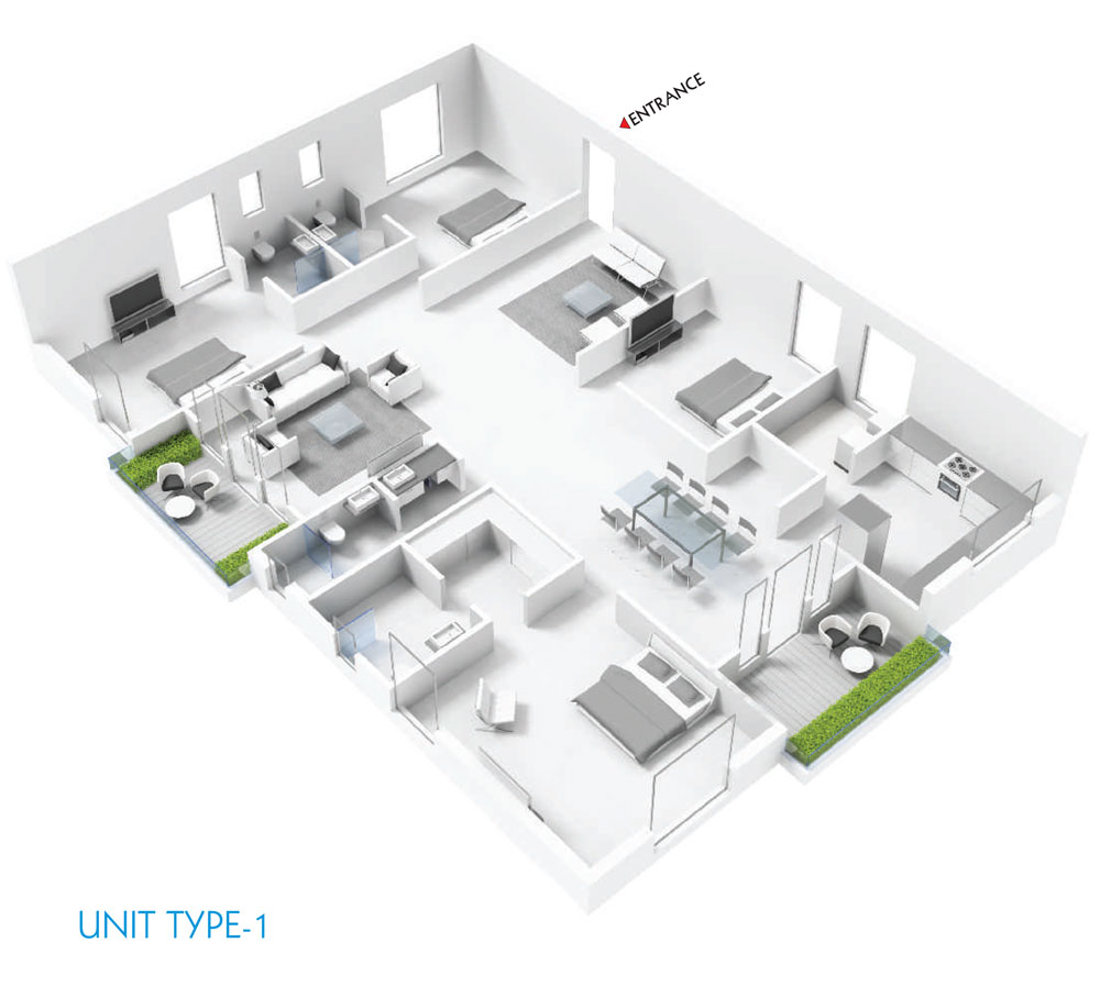 Aurum offers 10 ultra luxury, exclusive four-bedroom apartments built to uncompromising standards to deliver luxury beyond expectations. A grand five-star lobby leads to palatial homes which are meant for uber lifestyles. Glass doors open to the sit-out to enjoy sweeping views of Bay of Bengal. The new concept bathroom suites thrill its residents. The security is foolproof with electronic surveillance.